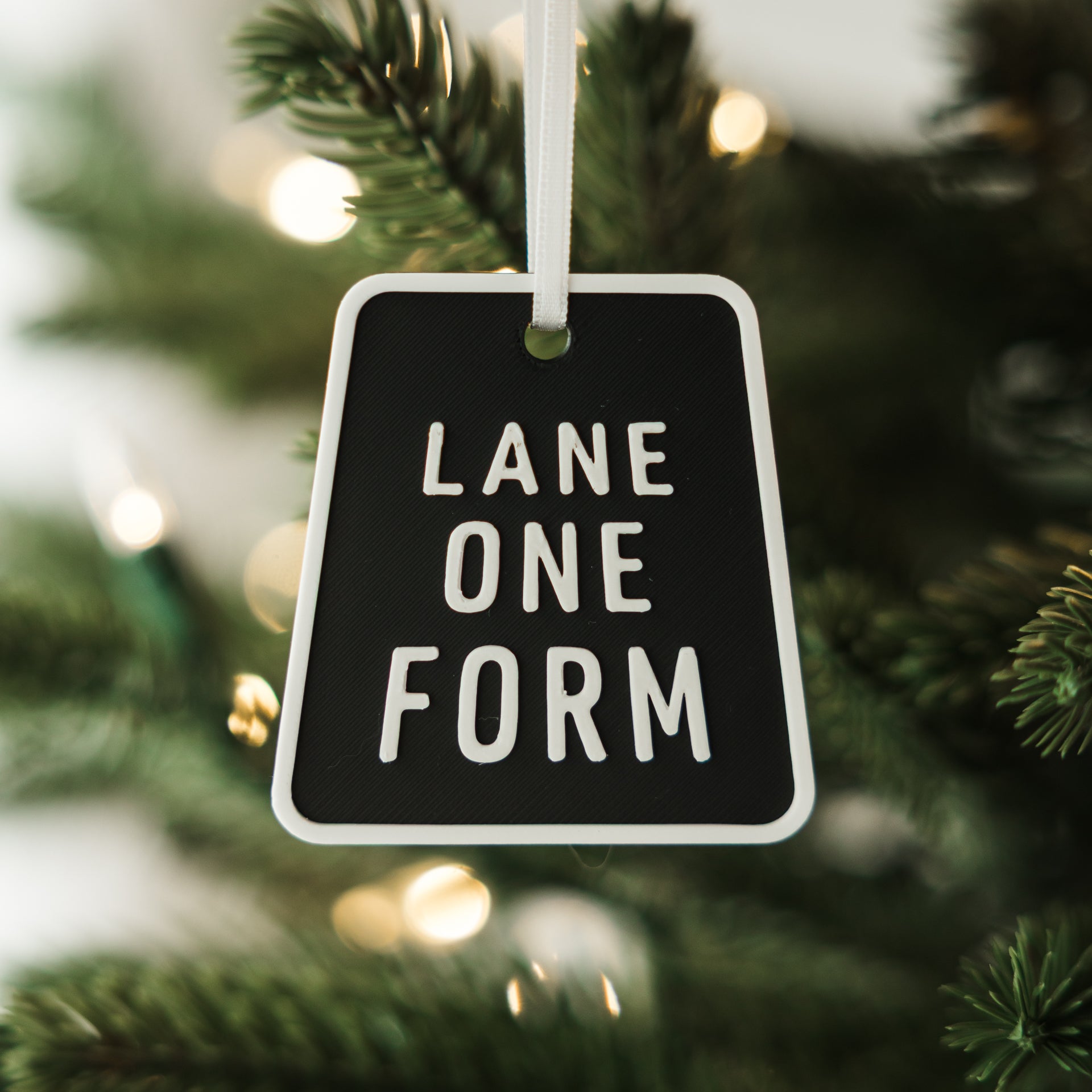 Add a touch of Canberra charm to your Christmas tree or rear-view mirror. Our Lane One Form ornament pays homage to the city’s most politely passive-aggressive road sign, now immortalised in festive form.